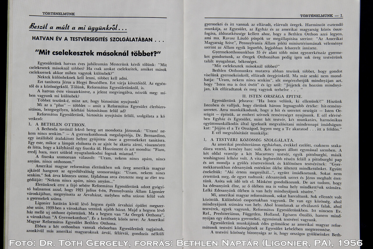 1. USA Pennsylvania Ligonier Bethlen Otthon - Bethlen Home 2 Története - Bethlen History 3 Az AMRE 50 éve, 1956