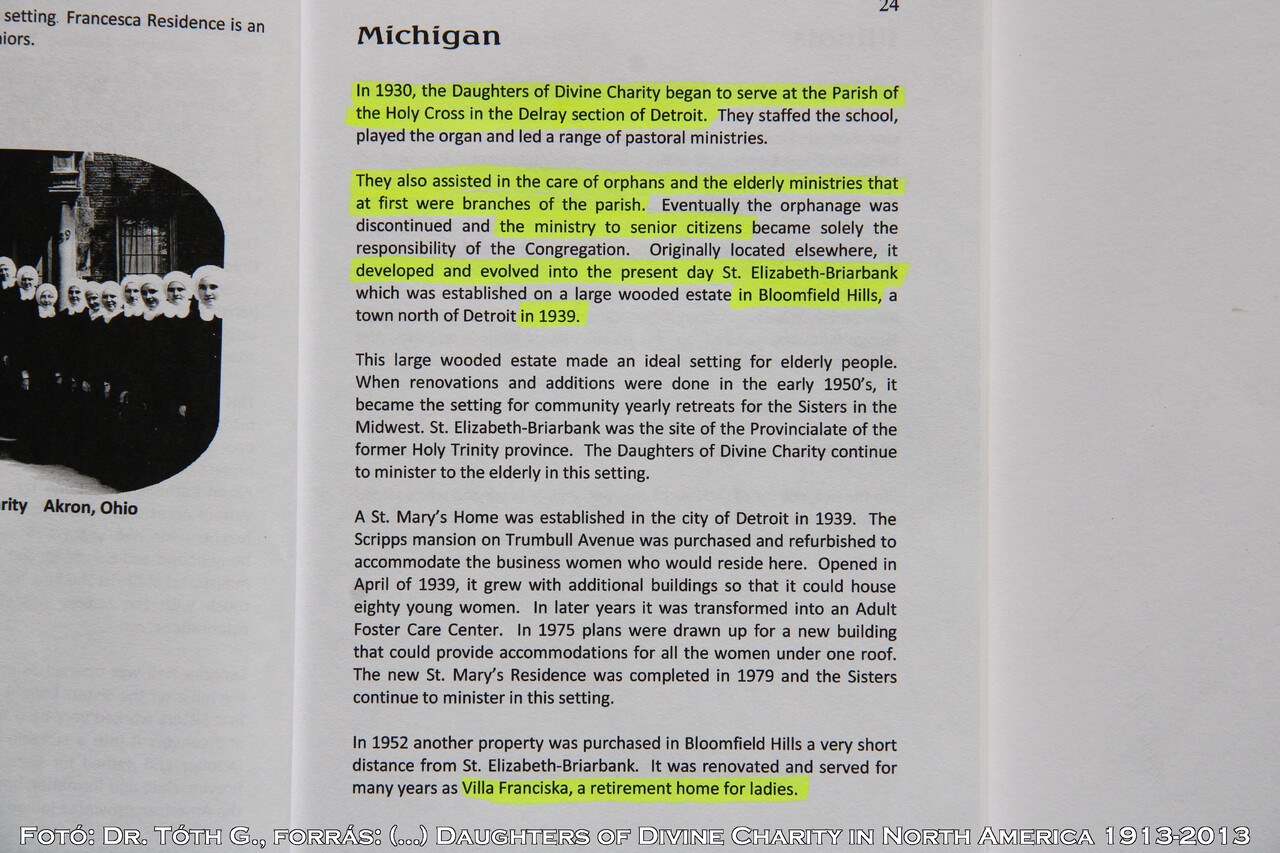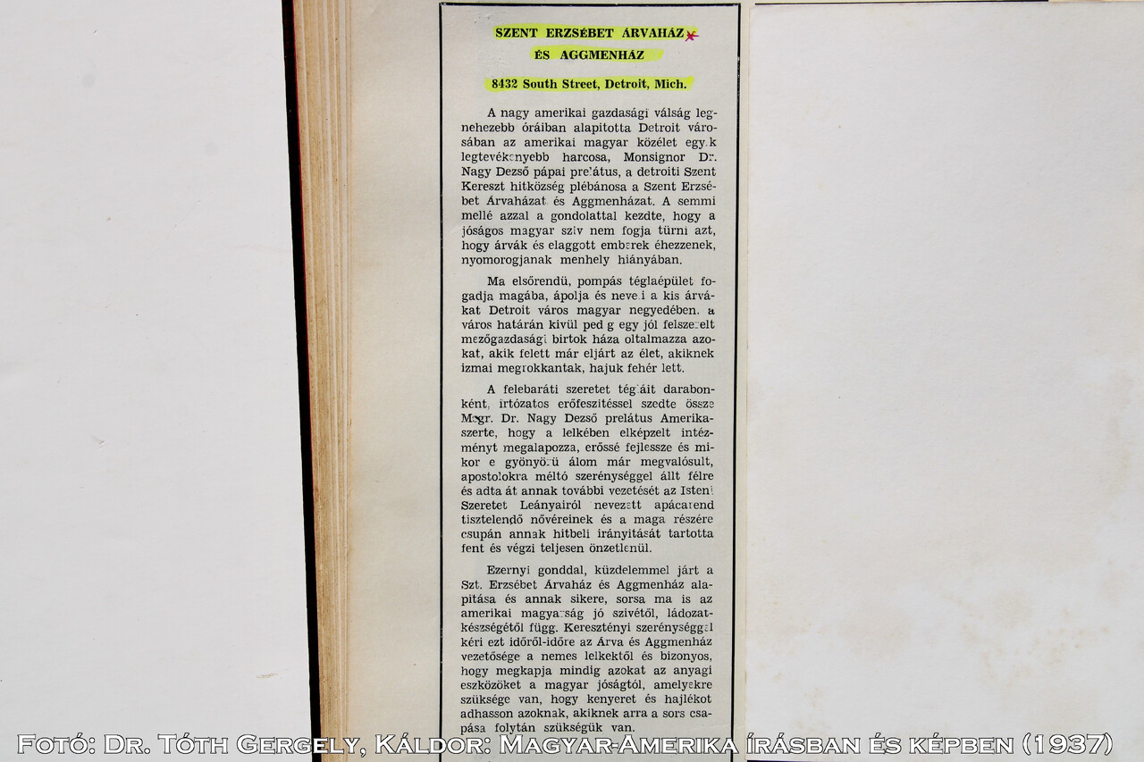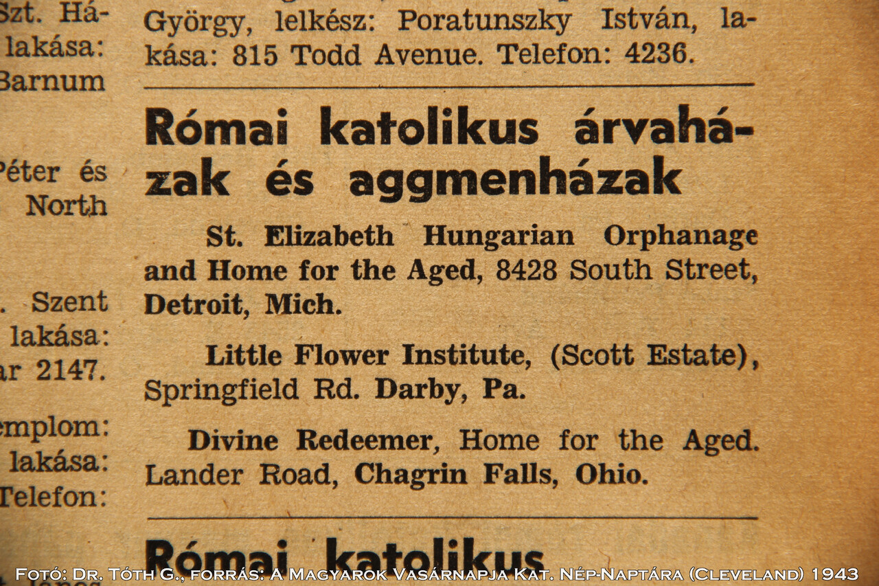 1. USA Michigan Detroit Szt. Erzsébet Árvaház - St. Elizabeth Orphans Home