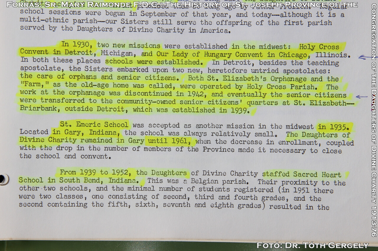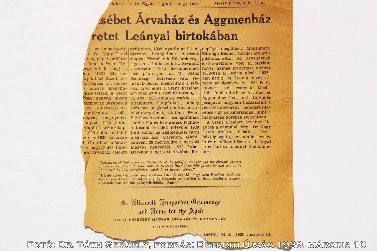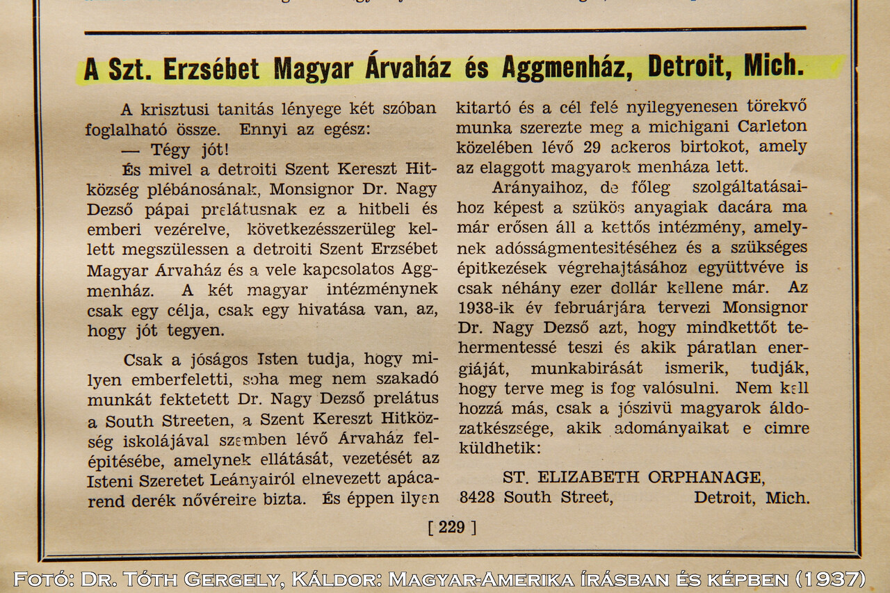 1. USA Michigan Detroit Szt. Erzsébet Árvaház - St. Elizabeth Orphans Home