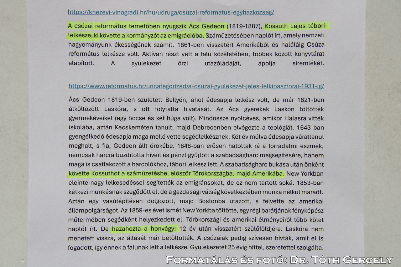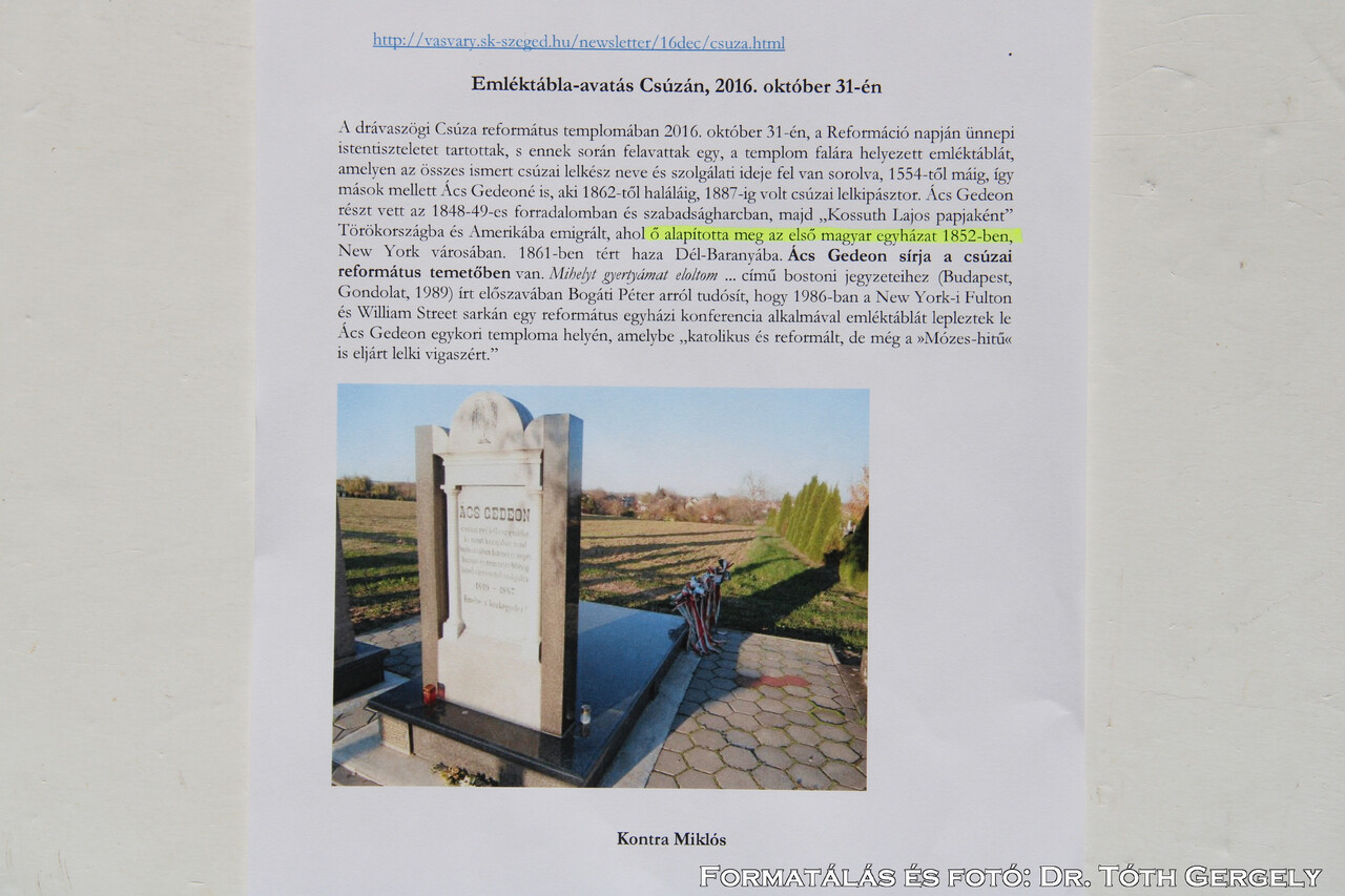 7. Magyarország és Kárpát-medence Csúza, Nt. Ács Gedeon nyughelye - Rev. Ács (New York)