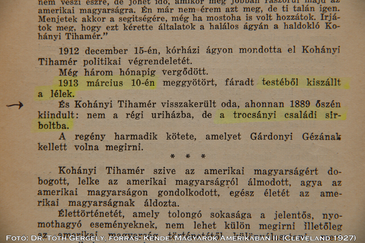 7. Magyarország és Kárpát-medence Trocsány, Kohányi Tihamér nyughelye - T. Kohányi (Cleveland) resting place