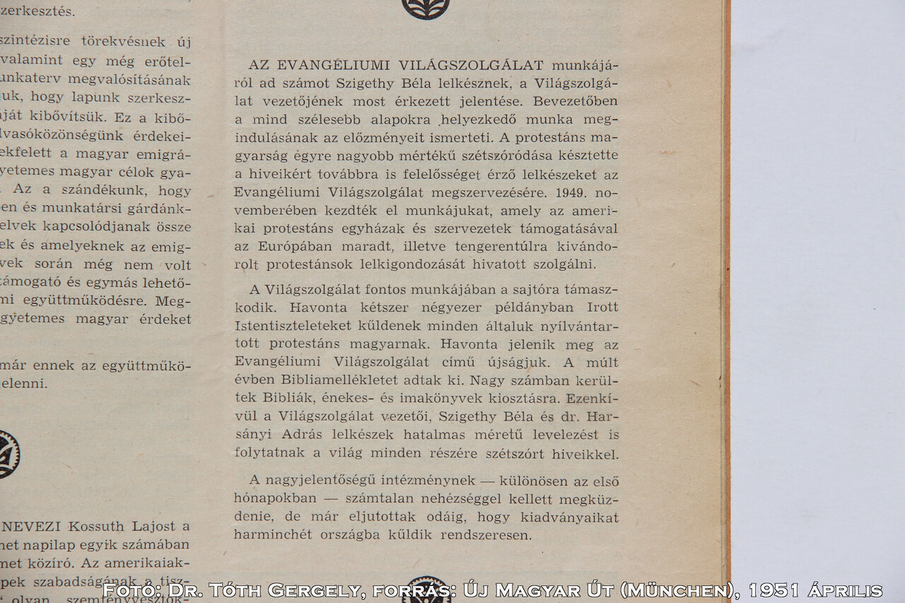 Áttekintés, és Fejős: A tengerentúli magyar egyházak (1991) - Overview, and Fejős 1991